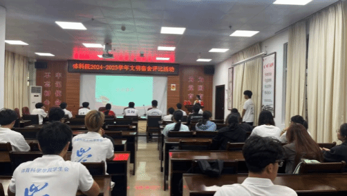 为进一步营造积极向上、整洁有序的宿舍环境,增强同学们的集体荣誉感与归属感,12月3日,体育科学学院2024-2025学年文明宿舍评比会议在尚体馆会议室举行。学生会指导老师张家源、学院七大学生机构代表出席评比会议。本次会议以 “文明宿舍,你我共建” 为主题,吸引了众多师生参与。