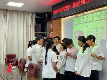 张富锋向新团员提出四点希望:一要坚定理想信念,筑牢听党话、跟党走的思想根基;二要勤奋学习钻研,提升综合素质与实践能力;三要主动担当作为,在集体中发挥带头作用;四要严守纪律规矩,维护团组织的先进性和纯洁性。他要求各团支书持续加强支部建设,增强组织活力,密切与班委协作,共同建设富有凝聚力、战斗力的基层团组织。