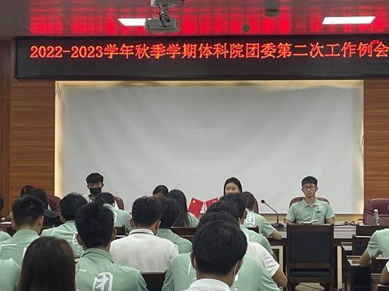 2022年11月25日,体科院团委在体育馆会议室召开2022-2023学年秋季学期体科院团委第二次工作例会。团委指导老师司茹、团委全体干部、各班团支书参加了会议。会议由团委秘书长王晓阳主持。
