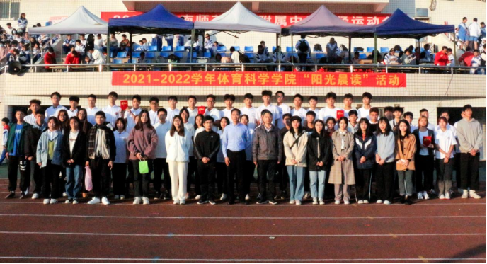 11月26日早,体育科学学院“阳光晨读”闭幕式于雷阳区田径场隆重举行。出席本次活动的嘉宾有体育科学学院庞景才书记、王海涛副院长(主持)、屈云副书记、辅导员陈静、叶萃蓬以及2021级各班班主任。