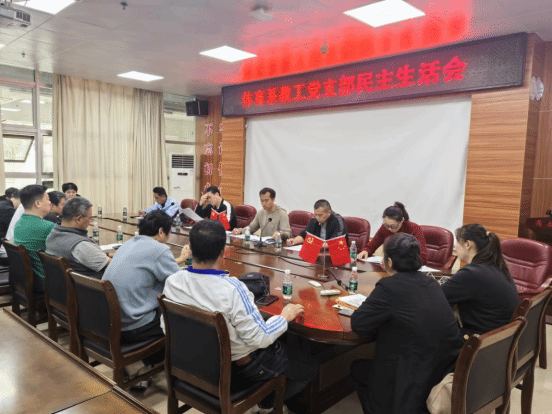 2025年3月12日下午,体育系教工党支部在尚体馆会议室召开2024年度组织生活会和民主评议党员会议。会议由党支部书记莫毅同志主持,全体教工党员参加了会议。