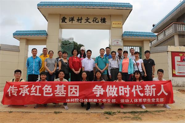 为重温党的光辉历史,扎实推进“两学一做”学习教育常态化制度化,不断加强党支部建设,激发党员继承和发扬党的优良传统。体科院公体部教工党支部和运动人体系学生党支部在体科院党委邱飞书记的带领下,于4月22日前往遂溪县下洋村开展以“传承红色基因,争做时代新人”为红色教育主题的党日活动。