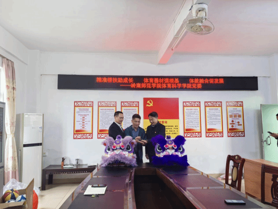 在下洋中心小学,学院党委精准对接学校需求,向下洋中心小学捐赠了一批实用体育器材,并与下洋中心小学领导围绕"体教融合促发展"主题进行了深入交流。下洋中心小学吴权明表示,此次体科院捐赠的器材,解决了学校体育器材短缺的难题,期待与岭师体科院进一步深化合作。驻村李延辉队长提出,将深化"校园醒狮队"建设作为体教融合的重要载体,着力打造具有地方特色的校园文化品牌。体科院党委庞景才书记强调,要将帮扶工作从"物资输送"向"人才培养、机制建设"深化,推动体教融合常态化发展。王海涛院长表示,学院将持续从器材补充、师资培训、项目共建三个方面深化合作,全面提升帮扶成效。
