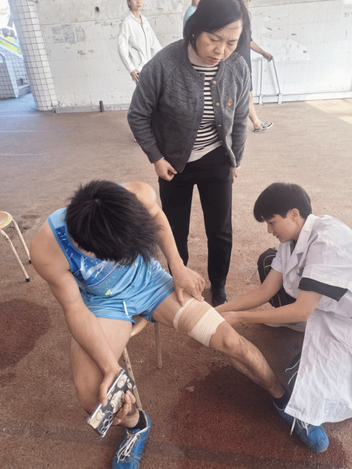 支部党员教师们积极投身服务一线。他们凭借扎实的专业知识和丰富的实践经验,在运动场边设立了临时的“运动防护与康复指导点”,主动为参赛学生提供赛前热身指导、赛中意外防护建议以及赛后恢复放松的专业咨询。党员教师们耐心细致地讲解运动损伤的预防知识,现场演示正确的热身拉伸动作,并针对部分运动员出现的肌肉紧张、疲劳等问题,给予了及时的放松与处理建议,有效降低了运动损伤的风险。