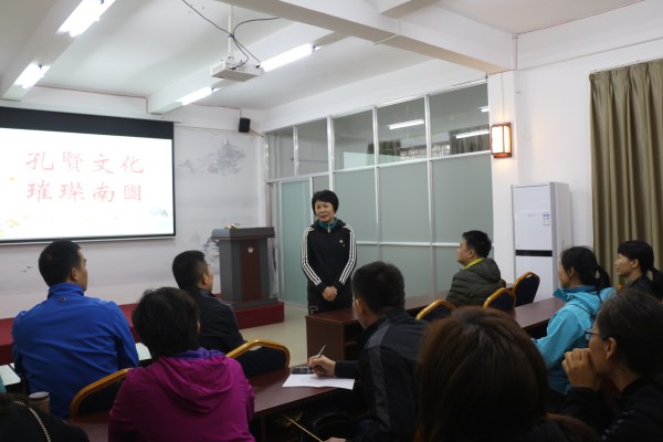 学校副校长兰艳泽受邀参加本次党日活动,并为两个支部的党员讲授了一堂党性教育课。在党性教育课上,兰艳泽高度肯定了体科院师生在中华传统文化的传播方面所做出的努力,并祝贺我校“孔子课堂”在第十三届全球孔子学院大会上荣获“先进孔子课堂”的称号(全球仅三个)。她认为中国传统文化以文明礼貌闻名于世,而文明礼貌体现在多方面。孝、爱、博爱及大格局是一脉相承的,都属于文明礼貌的范畴。她要求大家要将优秀文化像血液流淌一样自然而然的落实到实际行动中去。