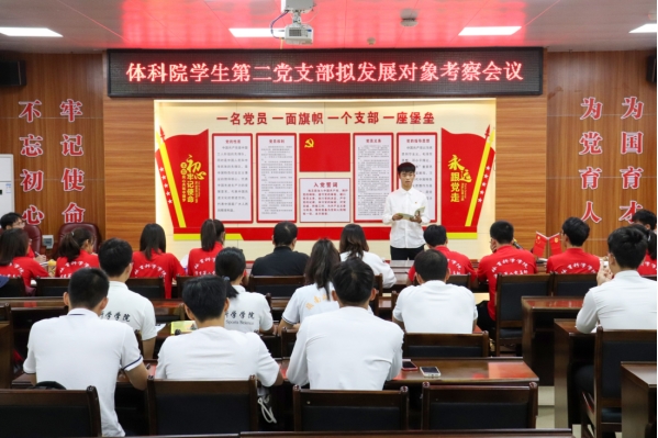 为积极响应党的号召,进一步加强学生党员的培养,11月26日晚上,体科院学生第二党支部在体育馆会议室召开了拟发展对象考察会议。会议由支部书记陈静主持,支部宣传委员乔志携支部联络员参与此次会议。