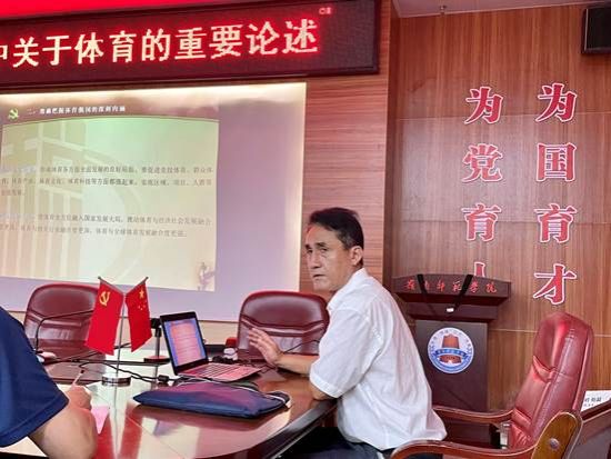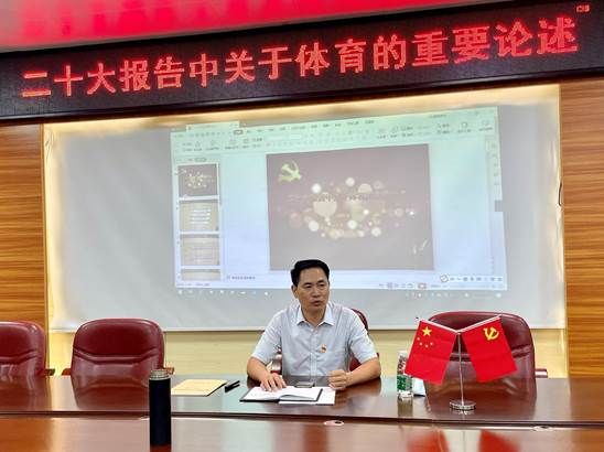 赵永峰带领大家学习党的二十大关于体育的重要论述,从全面了解党的二十大报告中关于体育的完整表述、准确把握体育强国的深刻内涵、奋力开创体育强国建设新局面、加强青少年体育工作这四个方面分享了他的学习心得。他表示,习近平总书记关于体育的重要论述内涵丰富、思想深刻、要求明确,是习近平新时代中国特色社会主义思想的重要组成部分,为新时代推动体育改革发展提供了根本遵循,全体党员同志要深入学习党的二十大关于体育的重要论述。