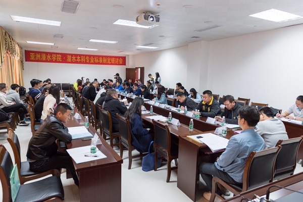 3月10日下午,亚洲潜水学院潜水本科专业标准制定研讨会在国家体育总局湛江潜水运动学校举行。亚洲潜水联合会主席、国家体育总局湛江潜水运动学校校长石波教授,国家体育总局湛江潜水运动学校党委书记袁浩然先生,我校体育科学学院院长、亚洲潜水学院执行院长章晓霜教授,我校体科院副院长李刚教授、肖洁副教授等领导,以及来自省内外28家资深企业代表参加了本次标准研讨会。会议由国家体育总局湛江潜水运动学校原副校长、亚洲潜水学院文野教授主持。