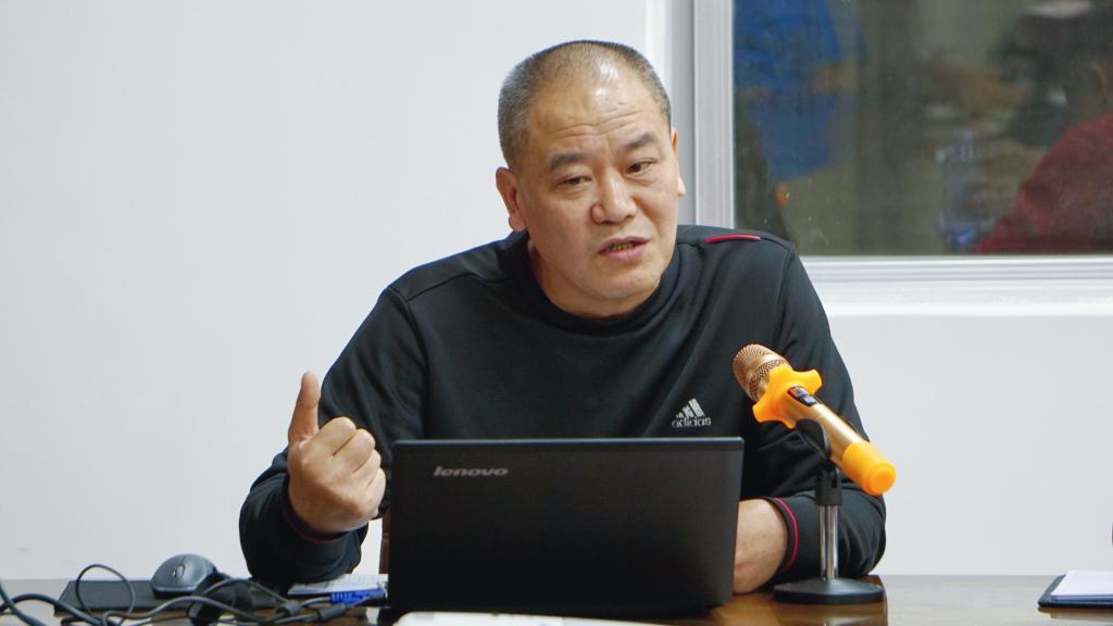 为尽快向全体教职工传达学校2018年度工作会议的相关精神,统一思想,使其勠力同心、积极有为,3月7日下午,体科院在体育馆会议室召开全体教职工政治理论学习大会。会议由院长章晓霜主持。