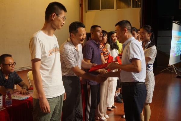 体科院李刚副院长宣读表彰决定,对孙卫红等12名“优秀考研辅导老师”和李厚盛等44名“优秀考研学生”进行了表彰和颁奖。此外,还进行了2018—2019年度学生考研辅导教师团队的受聘仪式,聘请叶萃蓬为2019年考研班的班主任。