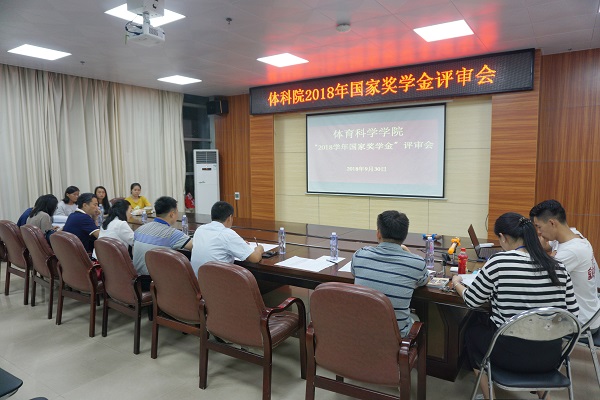 为了公开、公平、公正地做好国家奖学金的评选工作,表彰和鼓励2017--2018学年中学习优秀、表现突出的优秀学子。近日,体育科学学院在体育馆会议室召开了2018年国家奖学金评审会议,体科院党委郑晓辉副书记、体育教育系系主任孙卫红副教授、社会体育系系主任孙忠利博士、运动人体科学系主任王海涛教授、以及辅导员莫毅、陈静、伍文海、叶萃蓬老师作为评委参加了本次会议。