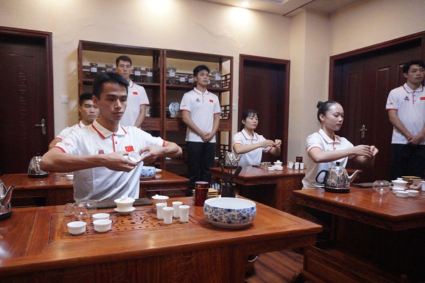 “茶艺”,作为中华文化之国粹,在优秀传统文化中有着举足轻重的地位。邱飞、章晓霜等人欣赏了赴白实习队队员的茶艺表演后,对队员们优雅娴熟的表演赞不绝口。武术表演中,实习队表演的雄狮戏红球格外引人注目,耀眼威武的红狮象征着顽强拼搏的岭师体育人。此外,实习队以扎实的武术功底,在表演中将刀光剑影发挥到极致,拳术中气十足的呐喊声填满了体武馆,更舞动了“中国龙”磅礴的气势,将现场的气氛推向了高潮。实习队精彩绝伦的中华武术表演在热烈的掌声中圆满结束。