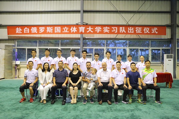 10月10日下午,岭南师范学院体育科学学院2018年赴白俄罗斯实习队出征仪式在体武馆拉开帷幕。体科院党委书记邱飞、院长章晓霜、副院长肖洁、李刚、体育教育系主任孙卫红老师、副主任许可老师以及实习带队老师等相关老师参加了本次出征仪式本次出征仪式由副院长肖洁主持。