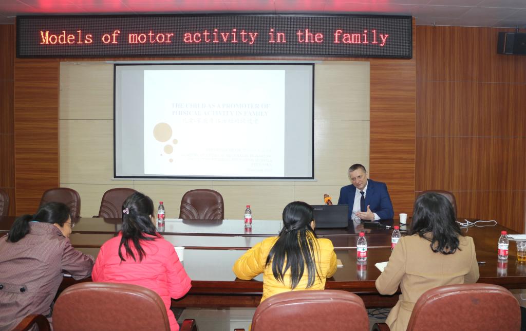 对话与融合:“一带一路”视野下民族哲学与文化国际论坛召开之际,波兰的家庭体育研究专家KrzysztofPiech受我院章晓霜院长的邀请,于2019年1月17日上午10:00来到体育科学学院会议室,与学院的教师进行学术交流。体科院章晓霜院长主持了交流会,学院学科带头人、学术骨干、博士参加了交流会。