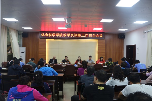 为深入贯彻落实学校及上级关于校园安全的精神,全面防范和化解安全隐患,全力确保2019年度校园的安全,3月6日下午,体科院在体育馆会议室专门召开2019年度教学及训练安全工作的专题会议,分析查找教学及训练过程中存在的安全隐患,制订问题整改和应对预案。会议由体科院党委书记邱飞主持,体科院领导班子成员、系部负责人、课程组组长,以及大运会各训练队的教练员参加本次会议。