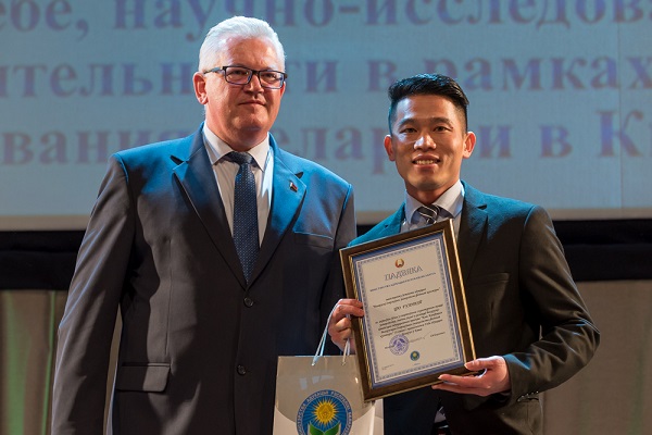 近日,白俄罗斯教育部在共和国图书馆礼堂举行“优秀中国留学生及在白突出教育工作者”颁奖典礼活动,中华人民共和国驻白俄罗斯共和国大使崔启明、白俄罗斯教育部长伊戈尔·瓦西里列维奇·卡尔边科、以及中白双方教育工作者代表、中国在白留学生代表共计约一千五百余人参加颁奖活动。来自岭南师范学院体育科学学院的王丽颖、陈浪、唐秋贤、邱广伟、雷汉杰、余嘉良、尤举梁、胡炳怡、任杰等9名留学生受到嘉奖,被白俄罗斯教育部授予“优秀中国留学生”称号,白俄罗斯教育部部长伊戈尔·瓦西里列维奇·卡尔边科先生为获奖留学生颁奖。