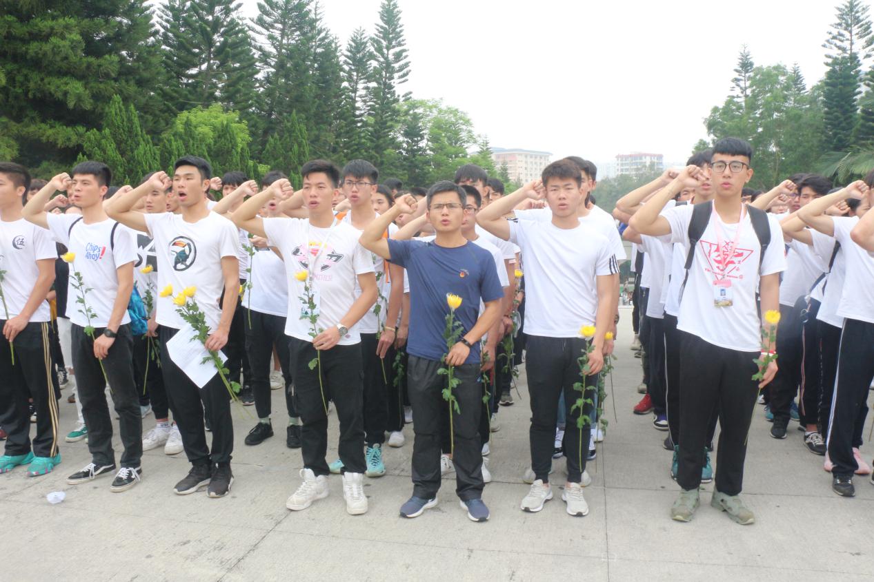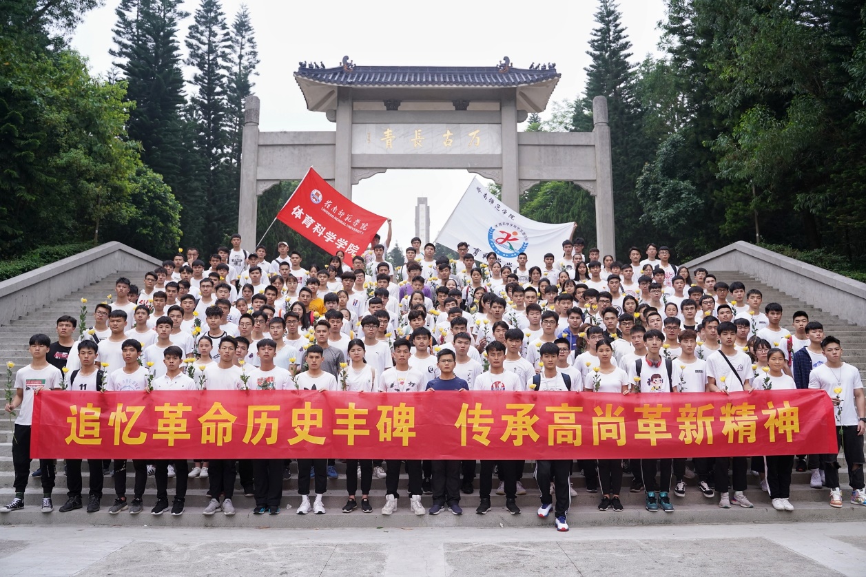体科院学子在学生会干部的组织下,一同来到寸金烈士陵园。“全体肃立”在庄严肃穆的纪念碑下,主持人致哀悼词,一字一句饱含对革命先驱的缅怀之情。历史知识服务队从纪念碑、乐民主义、朱也赤三个部分现场进行讲解。在讲解中,仿佛重现了血雨腥风的战争岁月,中华的优秀儿女为了国家安危和人民的幸福生活,不畏牺牲,为革命事业献身的场景。接着,全体同学在纪念碑前宣誓并默哀,向烈士们献上花束,表达对英雄烈士们的深切的敬意和无限的哀思。