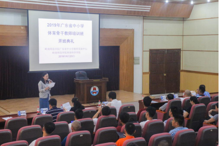 6月23日上午,体科院于图书馆学术报告厅举行2019 年广东省中小学体育骨干教师培训班开班典礼。华东师范大学体育与健康学院党委书记汪晓赞教授,体科院院长章晓霜、副书记郑晓辉、副院长肖洁、副院长孙卫红,教师教育学院副院长陈小亘,以及本期培训班学员参加了开班仪式。此次开班典礼由孙卫红主持。