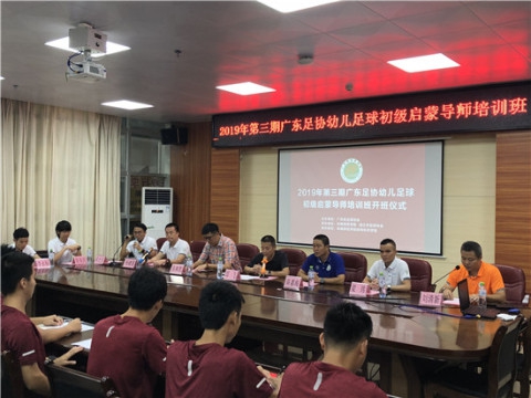 为了培养幼儿对足球的兴趣,推动幼儿足球教育工作规范化、体系化。7月13日上午,2019年第三期广东足协幼儿足球初级启蒙导师培训班在体科院体育馆会议室举行。体育科学学院党委书记邱飞,市足协名誉副主席陈嘉海以及省足协四位导师等出席开班仪式。会议由市足协部长刘清新主持。