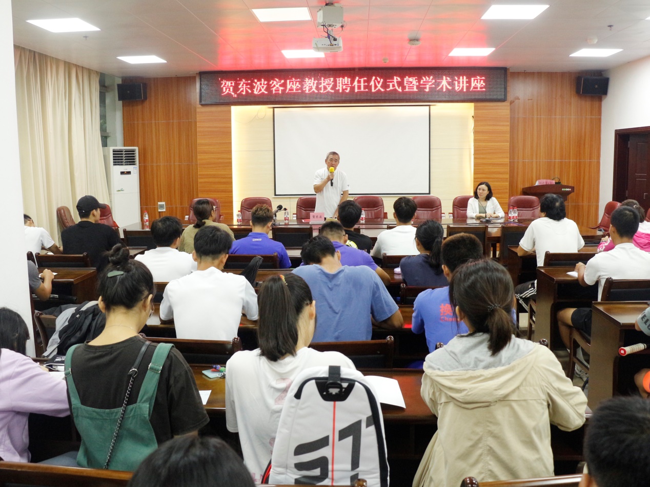 10月14日下午,为推动我院高水平网球专业人才培养,体科院特邀贺东波教授莅临我院开展学术讲座,并由戴黍副校长为贺东波颁发聘书。副校长戴黍、体科院党委书记邱飞、副院长王海涛(主持)、副书记屈云、副院长李刚、孙卫红和梁立启以及相关专业学生一同参加了本次讲座,讲座由王海涛主持。