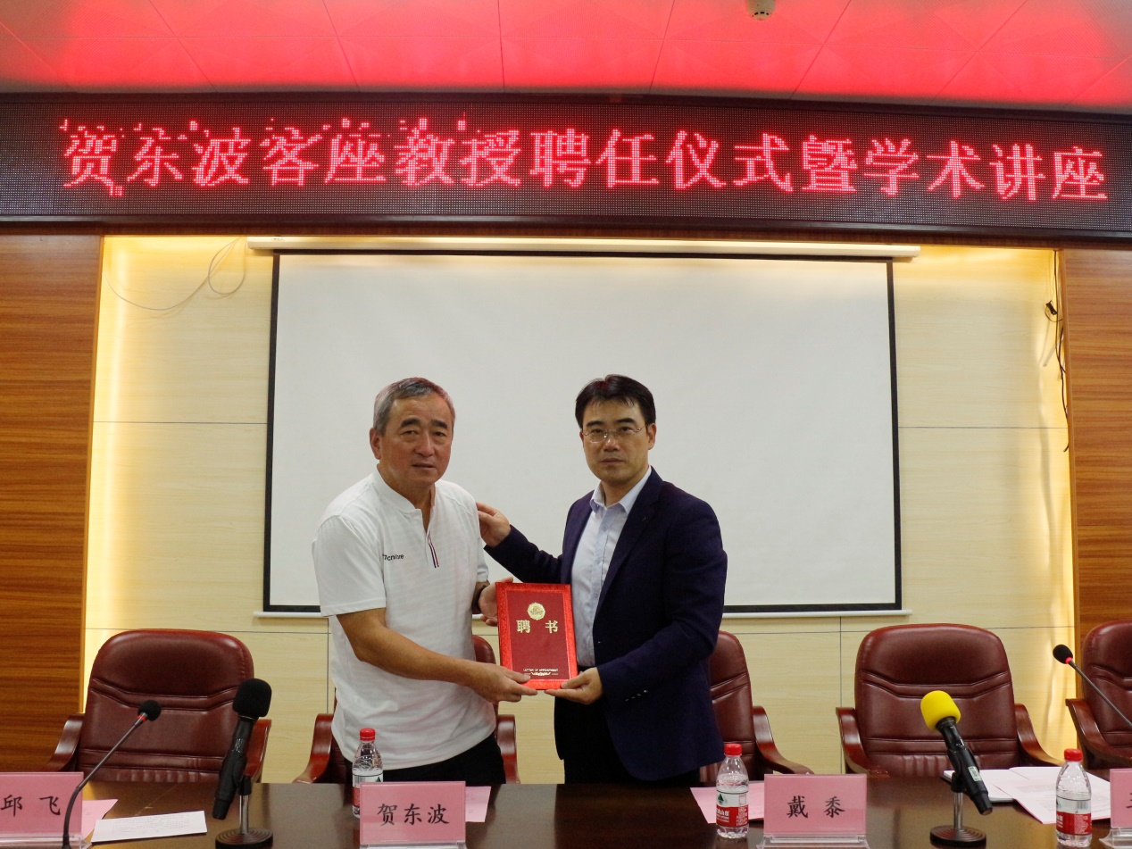 戴黍向大家简要地介绍了贺东波的基本信息和职业生涯,并表示希望在日后的校园生活中,贺教授可以融入岭师这个大家庭,不只是一个教练,更是一位老师,同时也对贺东波的受聘表示由衷的感谢,表示贺东波是第一次接受高校的聘用,这是岭师的荣耀。戴黍为贺东波颁发聘书并合影留念,贺东波表示:接受了这份聘书,就一定会尽最大的努力用自己的专业知识和技能为学校做出贡献。