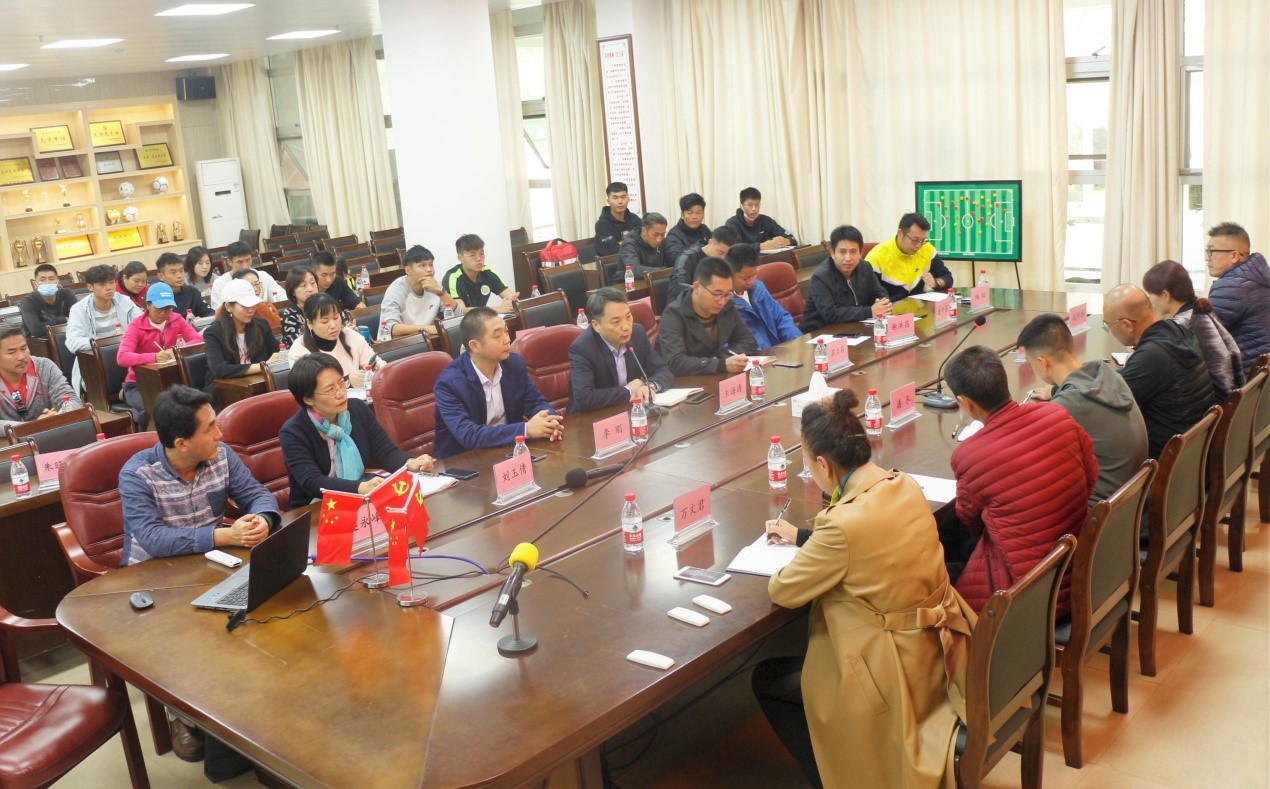 12月10日下午,由暨南大学体育学院潘冬副院长和马祥房主任带领的调研团莅临我院座谈交流。体育科学学院副院长王海涛(主持)、副院长李刚、副院长梁立启、公共体育部主任谢洪昌以及相关老师在体育馆会议室参加了本次交流会。本次交流会由王海涛主持。