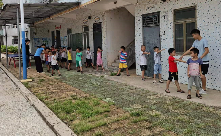 分界小学在每周三下午为体育科学学院辟设体育浸润行动计划教学专题,此次工作团队一行为例行开展体育与健康教学。此次活动由体育科学学院许可副教授精心设计,亲自指挥,带领16位体育教育专业大学生对分界小学六个年级(班级)共225名小学生开展分组教学。此次教学活动立足于“以体育人”的理念,以武术项目为依托,选择“五步拳”为教学内容,多种方式导入教学过程,寓教于乐,以趣促学,充分激发学生的运动乐趣。同时,也同步开展课程思政,巧妙地渗透德育的内容,将武德教育融入其中,真正发挥体育学科所蕴含的育人价值。