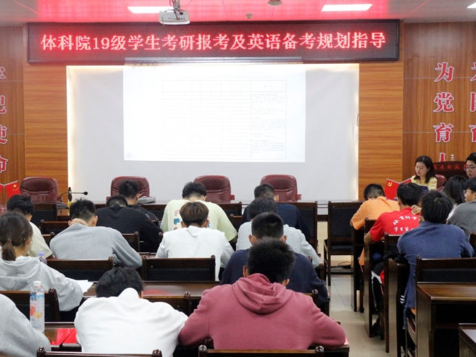 11月13日晚上,体科院于体育馆会议室召开19级学生考研规划座谈会。会议由辅导员陈静老师主持,19级有考研意愿学生参加了会议。会议邀请了有丰富经验的考研指导老师林永智、李红梅。