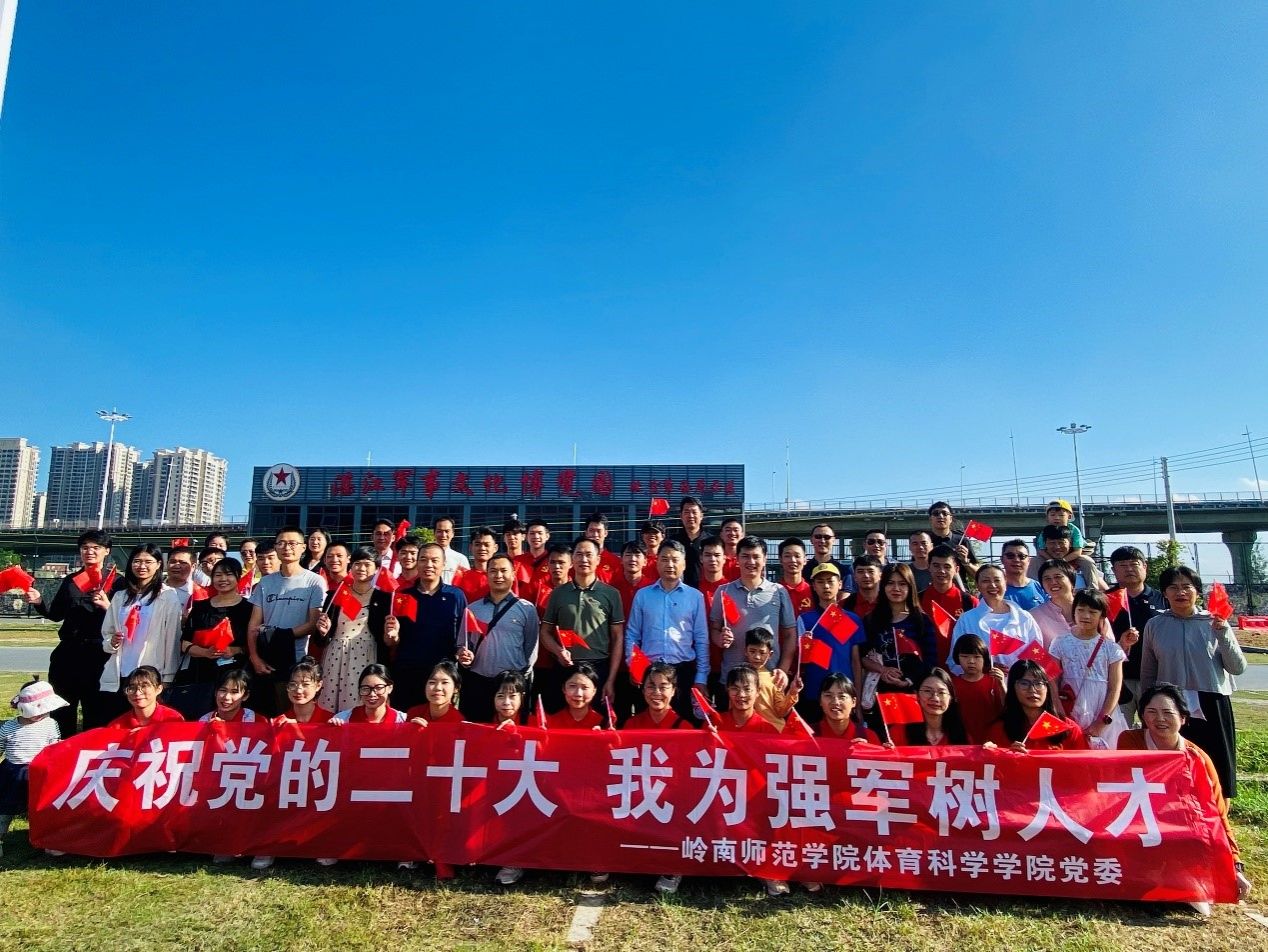 为进一步加强党员的爱国主义教育和党性教育,积极弘扬伟大的抗战精神,进一步增强使命感和责任感,巩固“请党放心,强国有我”主题教育成果。2022年11月12日,体育科学学院运动人体科学系教工支部,体育系教工支部,社会体育系教工支部,学生第一、第二支部全体党员,共同举办“庆祝党的二十大,我为强军树人才”主题党日活动,共同前往湛江军事文化博览园,充分感受新时代国防和军队建设的壮阔历程和伟大成就,学习人民军队忠心向党,为党的事业矢志奋斗的伟大精神。