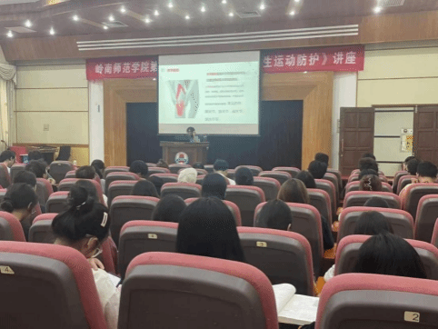 为提升全校师生的运动安全意识,倡导科学运动,避免运动损伤,增强自我保护能力,11月14日,体育科学学院在图书馆学术报告厅举办了一场《大学生运动防护》专题讲座。此次讲座,也是在岭南师范学院第三届体育节系列活动之一。讲座由体育与运动专业博士研究生、湛江市红十字会救护急救培训讲师、湛江市中小学健康教育专家宣讲团成员,在健康管理、慢病防控、体育保健及运动防护等领域有深入研究的郑选梅老师主讲。