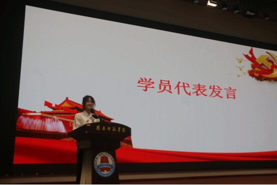 学员代表、美设院学员古沐凌岚代表全体学员郑重表态:端正思想、努力学习、积极参加各项活动,不断提升党性,做新时代有为青年。