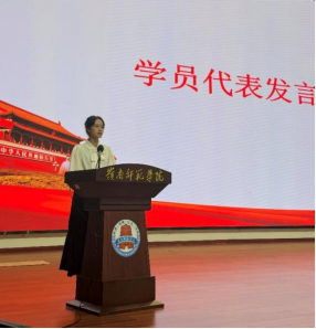 学员代表、体科院学员何慧婷代表全体学员郑重表态:通过这次的学习,信仰之基更牢、入党动机更纯、奋斗之志更强。她表示,会以此次培训为新起点,进一步锤炼入党决心,坚定加入中国共产党、为党和人民事业奋斗的信念。