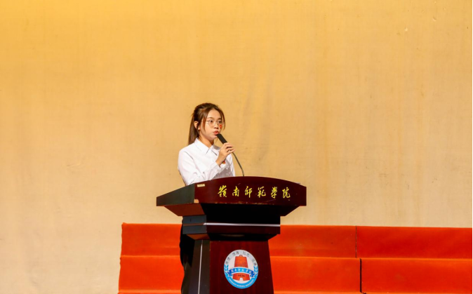 文传院优秀学员代表邓诗苑表示,将在未来的学习、工作、生活中贯彻孜孜不倦学党史、时时刻刻知党情、与时俱进跟党走这三个精神。