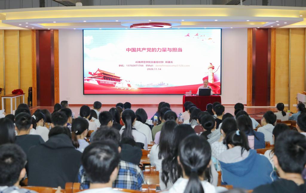 在专题授课中,学校党委常委、组织部部长邓逢光以“中国共产党的力量与担当”为主题,围绕共产党的画像、中国共产党的力量与担当、努力成为一名共产党员三个部分展开,以党员的身份面对哲学三问:“我是谁?我从哪里来?要到哪里去?”引出共产党的理论来源是一个重大原因和两个自由发展,为学员讲解中国共产党是什么。他还从中国共产党的奋斗历程、当前面临形势、前进方向三点并结合视频的方式向大家形象的描述了中国在共产党的带领下的发展和奋斗历程。