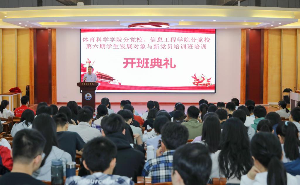 11月14日上午,体科院分党校、信息院分党校第六期学生发展对象与新党员培训班于弘雷楼211室正式开班。体科院分党校校长、体科院党委书记邱飞、副书记屈云、数计学院党委副书记全光华、机电学院党委副书记黄展、辅导员叶萃蓬老师、付怡老师、陈文君老师以及发展对象和新党员一同参加了开班仪式。开班仪式由体科院党委副书记屈云主持。