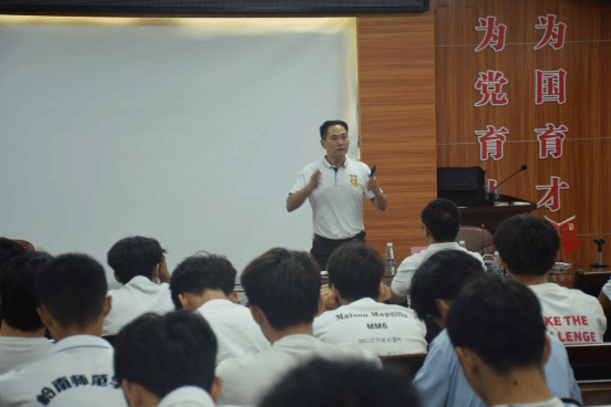 庞景才首先对王健校友的到来表示热烈欢迎,并深情回顾王健校友的成长历程。他指出,王健校友凭借不懈的努力与坚持,从一名普通体育老师成长为湛江市第一个正高职称教师,现在是湛江市爱周高级中学中学校长,是岭师学子的骄傲和学习典范。其每一步成长都凝聚着辛勤的汗水和智慧的火花,生动诠释着“努力坚持是通往梦想彼岸的桥梁”的深刻内涵。