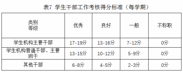6.一身兼多职的学生干部考核加分以最高加分为准,不重复加分。