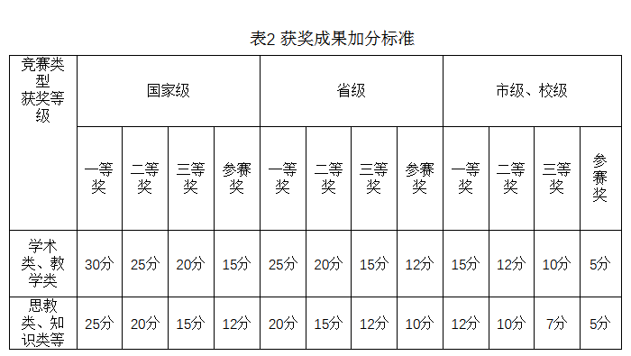 (二)获奖成果加分标准。