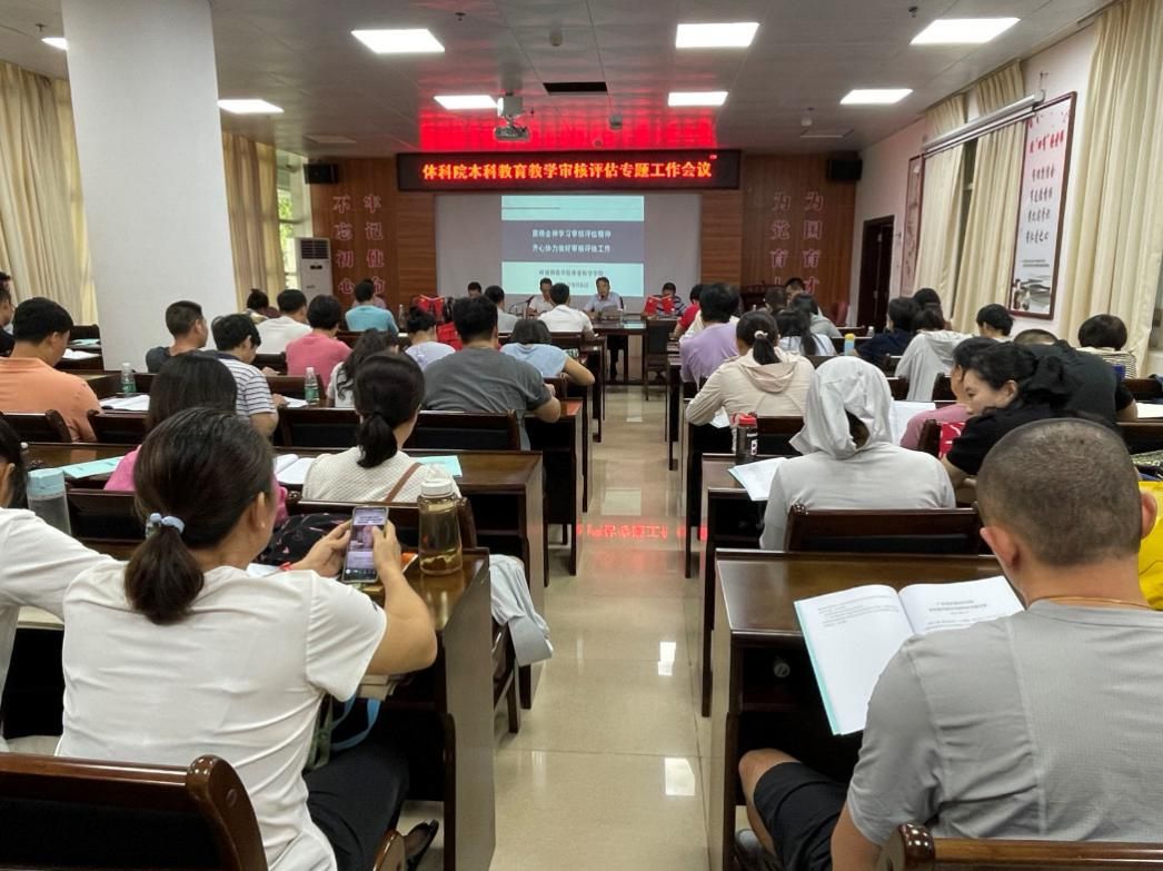 为深化审核评估内涵理解,落实学校《关于新一轮本科教育教学审核评估工作》的要求,扎实推进体科院本科教育教学审核评估工作,9月6日下午,学院在尚体馆会议室召开本科教育教学审核评估专题工作会议。体科院党委庞景才书记主持会议,王海涛院长做工作动员,梁立启副院长做工作部署。体科院全体教职员工参加了会议。