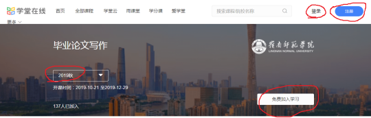 ②选择课程页面的2019秋,点击“免费加入学习”即可。