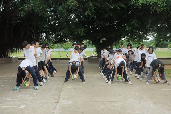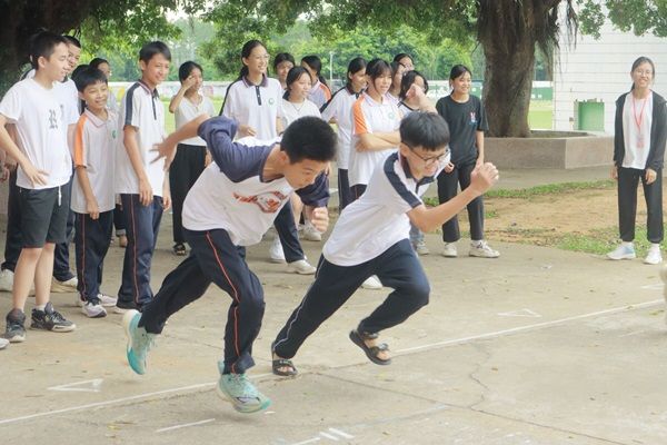 响亮的口哨声让3班的同学们再次打起了精神,炎炎夏日抵挡不了他们对体育课的热情。在彭诗慧老师的组织下,大家玩起了追逐游戏。每一次的转身,每一次的冲刺,都充满了紧张与刺激。