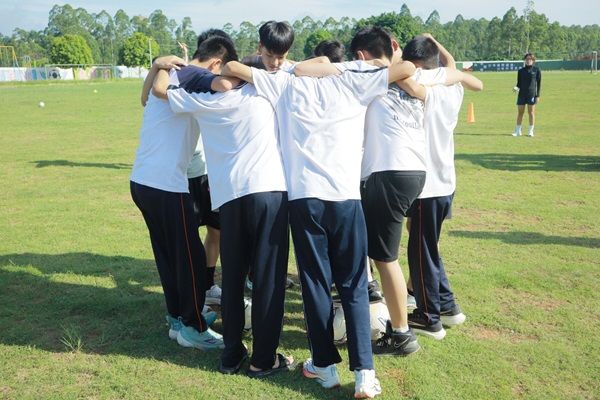 看!他们专注地练习直线传球的方向感,为了让球传出去能成一条笔直的直线,大家绞尽脑汁地寻找着解决办法。他们相互靠拢,谨慎后退,大家不断地通过亲身去体悟,去摸索出最佳的传球方法。