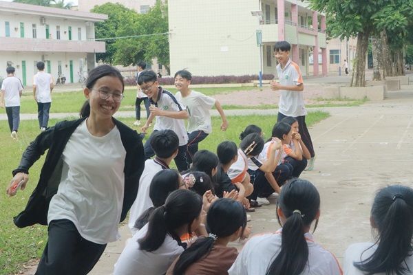 老师与同学们共玩追逐游戏(张文慧 摄)