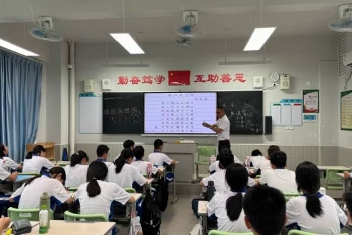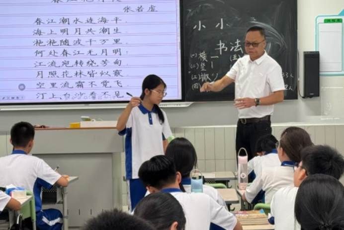 培训会议结束后,课程正式开始,叶秀荡校长莅临书法课堂,亲自为学生讲解握笔姿势以及书写规范,叶秀荡校长表示:“练习书法可以达到修身养性的作用。”并鼓励学生们在日常生活中应积极主动地练习书法。在叶秀荡校长的指导和鼓励下,学生们都各自在书法纸上尽情创作,课堂气氛瞬间达到高潮。