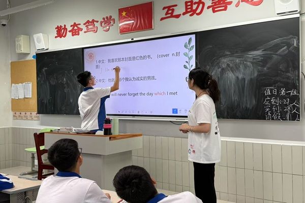 下课铃响时,不少学生仍意犹未尽。“原来语法课可以这么有趣!”“我现在终于分清这两种从句了!”孩子们的话语里满是收获的喜悦,脸上洋溢着满足的笑容。看着这些朝气蓬勃的面庞,卓瑜恩心中暖流涌动:支教的意义,或许就藏在这些瞬间里——用一堂课的时间播撒知识的种子,让孩子们在探索中爱上学习,在成长中积蓄力量。
