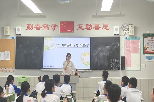 为巩固所学,课堂随即展开“看词造句”挑战。卓瑜恩给出“书本”“老师”等关键词,鼓励大家用定语从句描述身边事物。“老师借我阅读的书本非常有趣!”一名男生率先举手作答,赢得全班掌声。随后,同学们争相发言,有的句子虽略显稚嫩,却充满创意,课堂上的欢呼声此起彼伏。