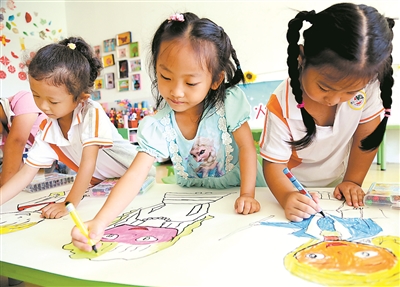 9月7日,山东省滨州市博兴县第一小学附属幼儿园大班的小朋友在为老师画“卡通像”。教师节前夕,小朋友们拿起画笔,描绘老师在自己心中的形象,作为送给老师的节日礼物。 |