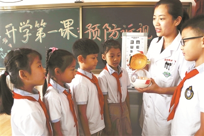 9月1日,青岛宁安路小学邀请眼科医生为学生讲解科学用眼知识。本报记者 孙军 摄