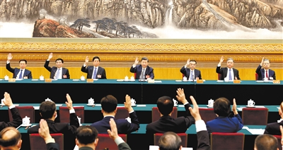会议首先在大会秘书长王沪宁主持下,以举手表决方式通过了由习近平同志等46人组成的主席团常务委员会名单。