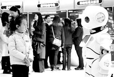 12月6日,一名小女孩在2023世界5G大会展厅现场与机器人互动。当日,2023世界5G大会在河南省郑州市开幕,大会以“5G变革 共绘未来”为主题,以持续推动5G不断演进创新为目标,推动构建融合共创、协同创新、开放共赢的全球科技合作体系和产业生态。 新华社记者 郝源 摄